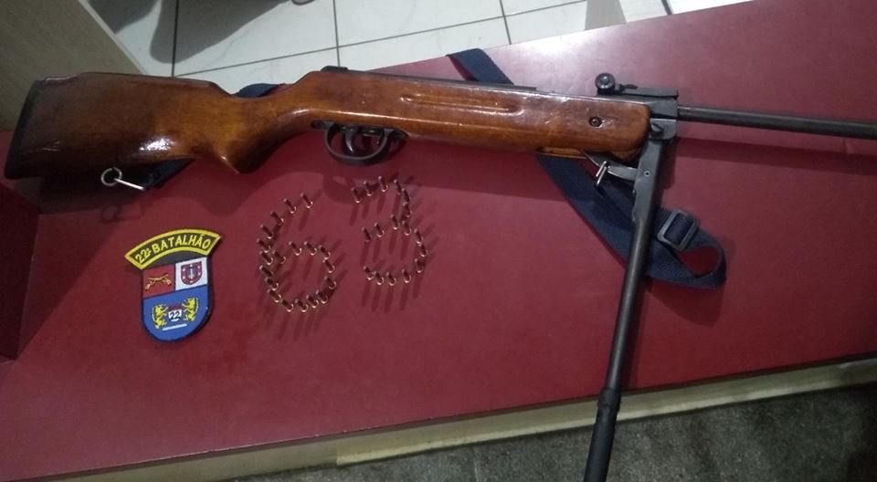Uma das apreensões aconteceu no bairro Jardim Cesar Augusto, em Colombo. Segundo o 22º BPM, um homem ameaçou e atirou contra a própria esposa, após isso, a espingarda de fabricação caseira calibre 22, que estava com ele, foi apreendida.